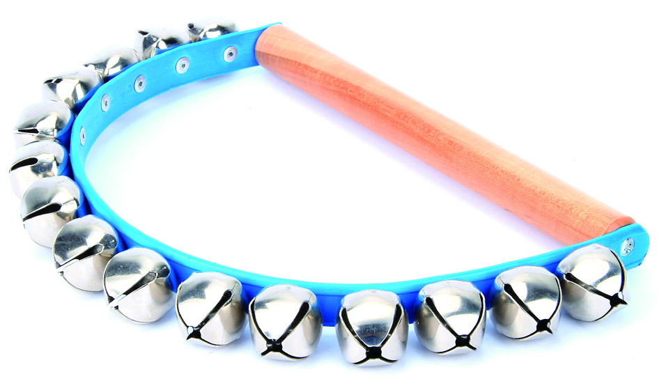 结构:手持式半圆形状,挂有5个小铃铛,铃铛悬挂牢固,比一般的手铃更结实耐用。半圆附铃皮皮带由纯天然木制把连接在一-起更轻便实用